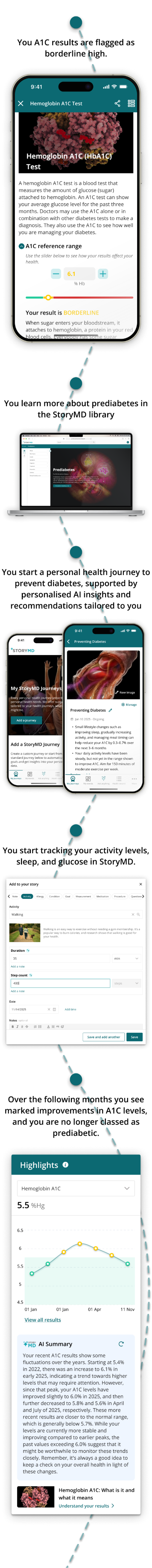 From managing a chronic condition to tracking a pregnancy or recovering from injury, StoryMD offers episodic AI-guided targeted support for all of your health journeys. Built on the strength of the StoryMD library and your health data, each journey offers insights tailored to you and your health data.